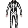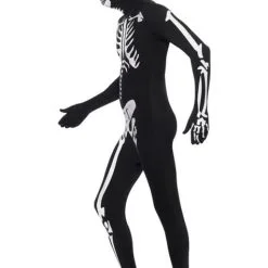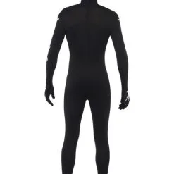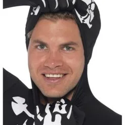 Beinhaltet einen schwarzen Overall als zweite Haut mit aufgedrucktem Skelett, das des Nachts leuchtet, sowie einen integrierten, unsichtbaren Hosenschlitz und eine Öffnung unterhalb des Kinns.